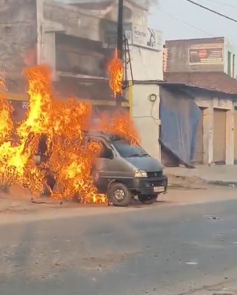खड़ी कार में आग लगने से हड़कंप मचा हुआ है। गाड़ी में अचानक आग लगने से अफरा तफरी मच गई। इको वाहन में गैस सिलेंडर रखे होने की आशंका के बीच भी लोग यहां वहां भागते दिखे।