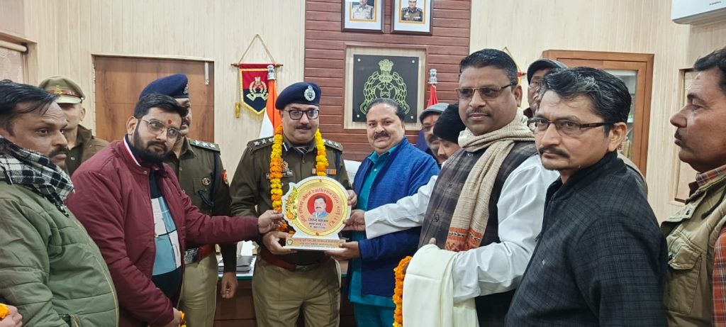 समारोह के दौरान जिला अध्यक्ष जितेंद्र महाजन ने वरिष्ठ पुलिस अधीक्षक डॉ. बृजेश कुमार सिंह, एसपी नगर श्री विजेंद्र द्विवेदी, एसपी ग्रामीण श्री हिरदेश कुमार कठेरिया, सीओ सिटी श्री रजनीश कुमार उपाध्याय, सीओ उझानी श्री देवेंद्र कुमार, कोतवाली प्रभारी संजय कुमार सिंह और क्राइम इंस्पेक्टर अशोक कुमार यादव सहित अन्य थाना प्रभारियों को माला, पटका, शाल और प्रशस्ति पत्र देकर सम्मानित किया।