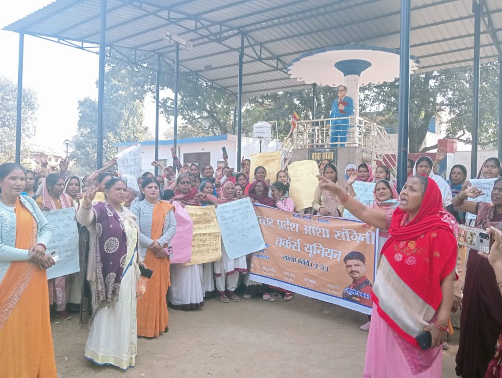 नया बदायूं, संवाददाता। उत्तर प्रदेश आशा संगिनी वर्कर्स यूनियन के बैनर तले अपनी लंबित मांगों को लेकर धरना पिछले 38 दिनों से चल रहा है। गुरुवार को भी शहर के मालवीय आवास पर धरना प्रदर्शन जारी रहा। यहां मालवीय आवास पर पहले धरना प्रदर्शन किया। इसके बाद जिलाध्यक्ष जौली वैश्य के नेतृत्व में आशा कार्यकत्रियों ने मालवीय आवास से आंबेड़कर पार्क तक मार्च निकाला गया। इसके बाद पार्क में संविधान निर्माता बाबा साहेब डॉ. भीमराव आंबेडकर की प्रतिमां का मार्ल्यापण किया। इस दौरान जिलाध्यक्ष जौली वैश्य ने कहा कि हमारी मांगों को लेकर शासन प्रशासन की ओर से कोई सुनवाई नहीं की गई है। इससे व्यथित होकर यूनियन की कमेटी ने फैसला किया है कि आज 23 जनवरी को खून से लिखा खत मुख्यमंत्री व प्रधानमंत्री को भेजा जाएगा। खून निकालने को जिला पुरुष अस्पताल की लैब से टैक्नीशियन को सुबह 11 बजे मालवीय आवास पर बुलाने की मांग की है। इस मौके पर नीलम, अलका, पुष्पा, रेनू, दर्शाना, मीना मौजूद रहीं।