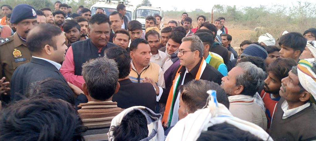 धरना पर बैठ गये कांग्रेस जिलाध्यक्ष अजीत यादव